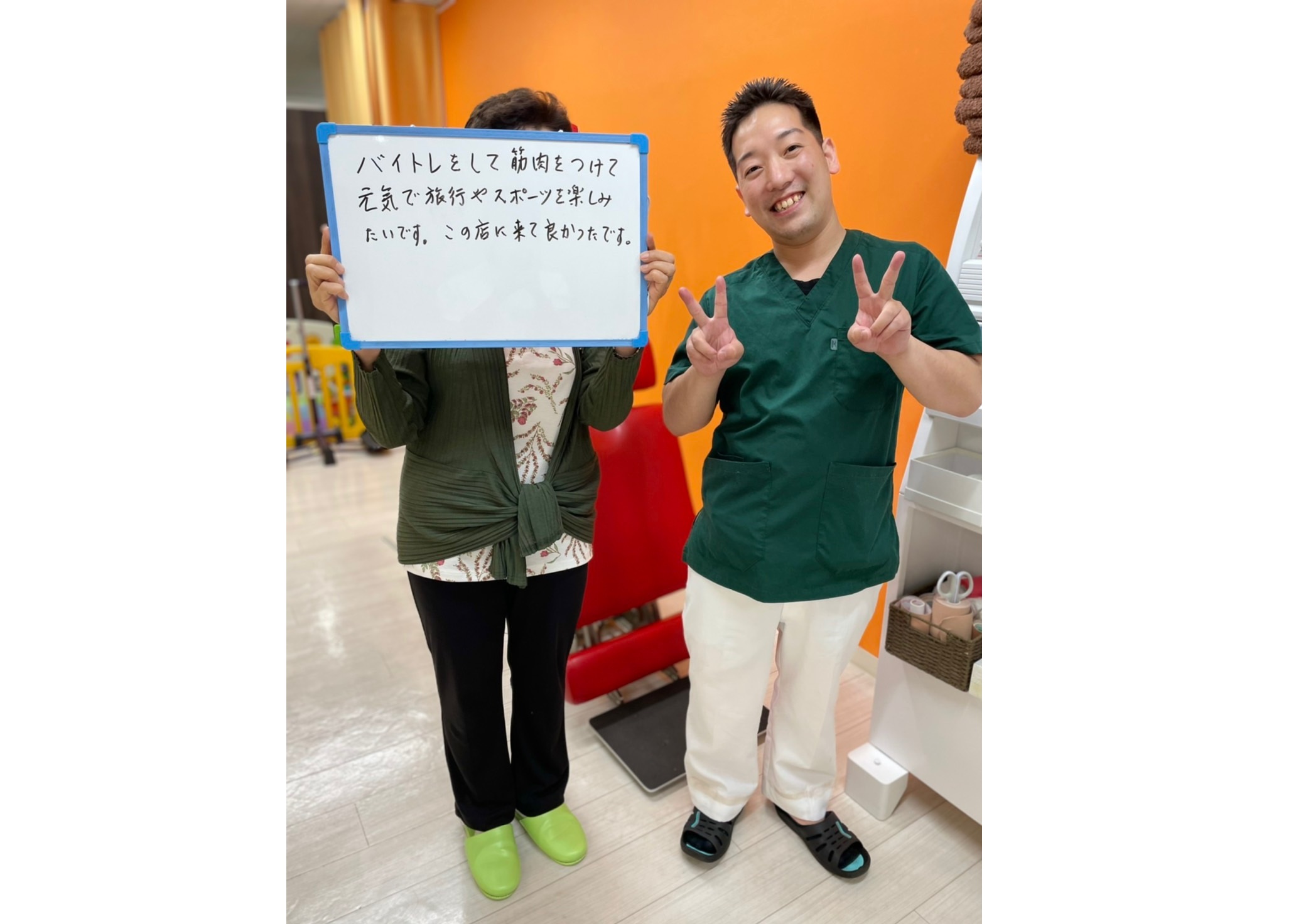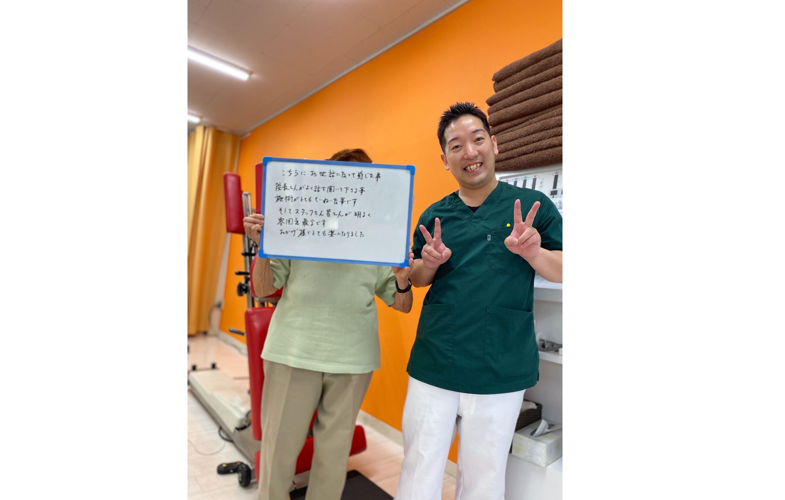 以前に入院をしてから歩行が困難になったり、立ち上がりが思うようにいかなかったりと困っていたのですが、治療を受けるうちに段々と立ち上がりと歩くのが楽になってきました。 もっともっと良くなるためにこれからも通っていこうと思います。